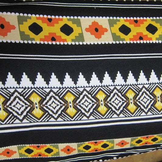 Yellow, Black and Orange Aztec on Cotton/Spandex Jersey Fabric