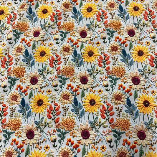 Embroidered Sunflowers on Smooth Vinyl Fabric