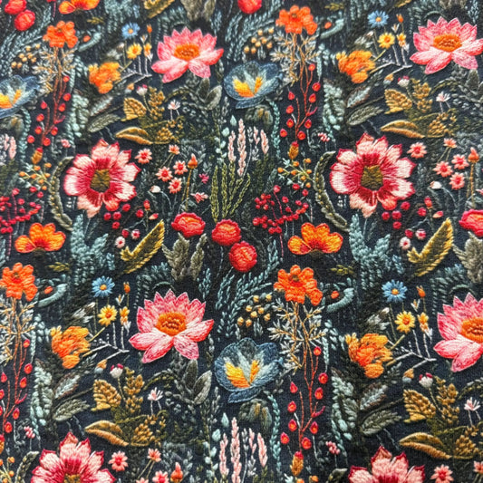 Embroidered Flower Garden on Bamboo Stretch French Terry Fabric
