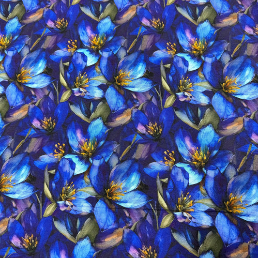 Sapphire Gentians on Bamboo Stretch French Terry Fabric