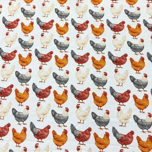 Chickens on Cream Bamboo/Spandex Jersey Fabric