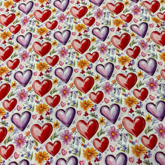Hearts and Flowers on Bamboo/Spandex Jersey Fabric