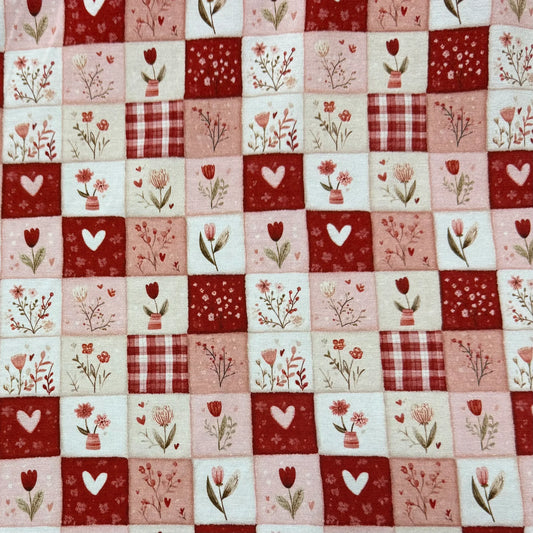 Pink and Red Valentine Patchwork on Bamboo/Spandex Jersey Fabric