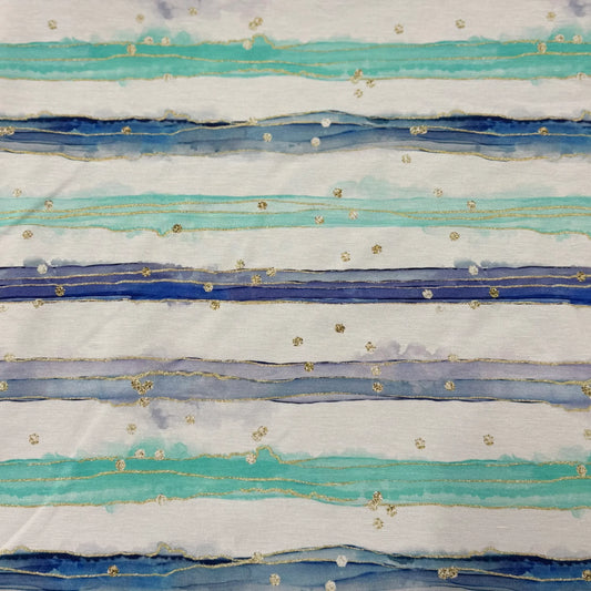 Teal and Blue Watercolor Stripes on Bamboo/Spandex Jersey Fabric
