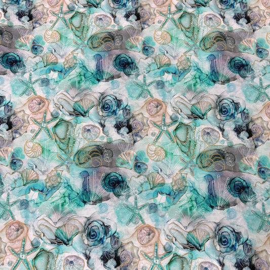 Starfish and Shells on Marble Bamboo/Spandex Jersey Fabric