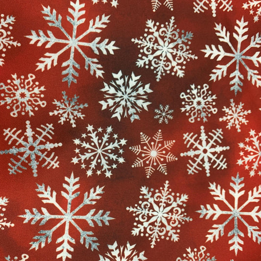 White Snowflakes on Dark Red Bamboo/Spandex Jersey Fabric
