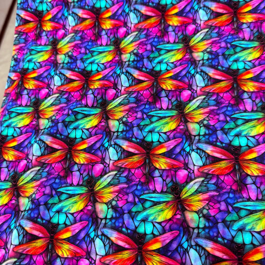 Rainbow Dragonflies on Bamboo/Spandex Jersey Fabric