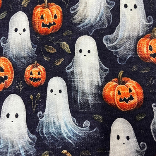 Ghosts and Pumpkins on Bamboo/Spandex Jersey Fabric
