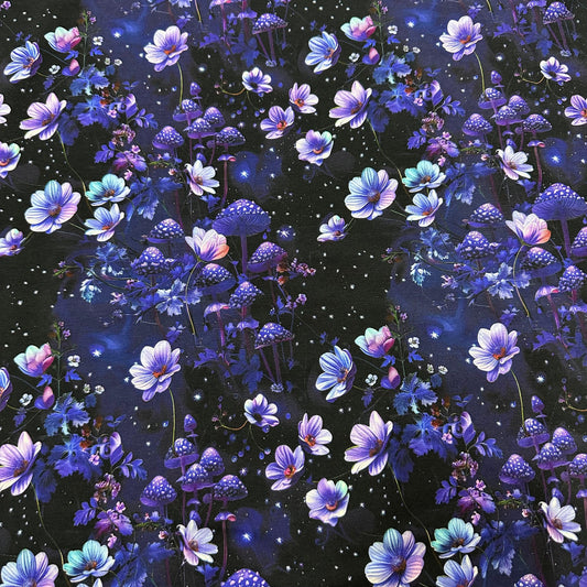 Purple Starry Mushroom Garden on Bamboo/Spandex Jersey Fabric