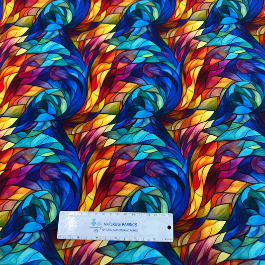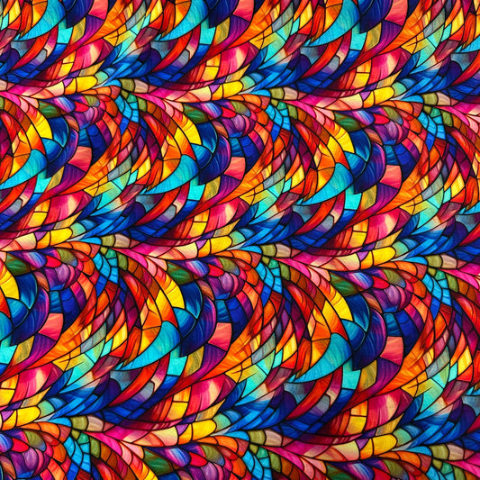 Stained Glass Feathers on Bamboo/Spandex Jersey Fabric
