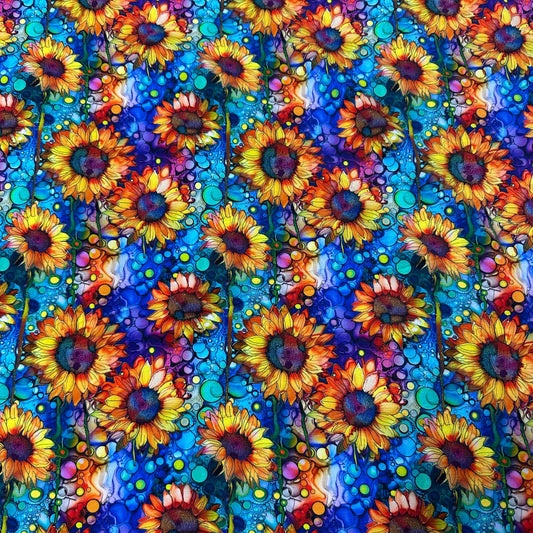Sunflower Alcohol Ink on Bamboo/Spandex Jersey Fabric