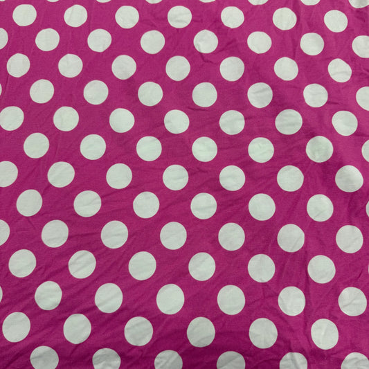 White 1" Dots on Pink Bamboo/Spandex Jersey Fabric - 200 GSM