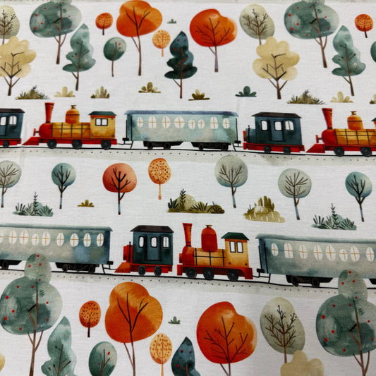Fall Foliage Train Excursion on Bamboo/Spandex Jersey Fabric