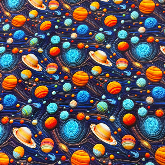 Embroidered Planets on Bamboo/Spandex Jersey Fabric