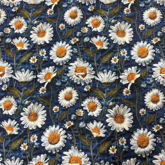 Embroidered Daisy Toss Jeans on Bamboo/Spandex Jersey Fabric