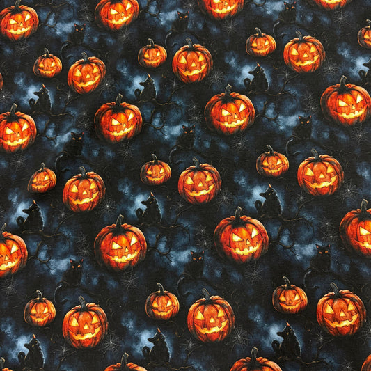 Pumpkins and Black Cats on Bamboo/Spandex Jersey Fabric
