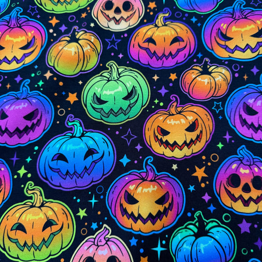 Rainbow Pumpkins and Stars on Bamboo/Spandex Jersey Fabric