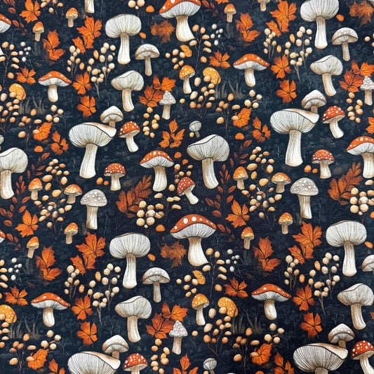 Fall Toadstools on Bamboo/Spandex Jersey Fabric