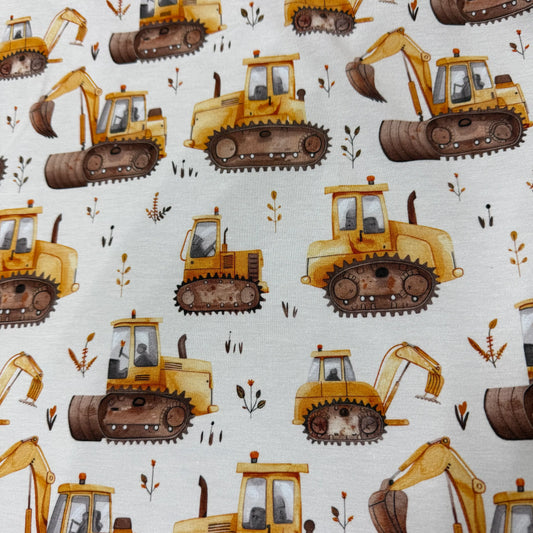 Construction Equipment on Bamboo/Spandex Jersey Fabric