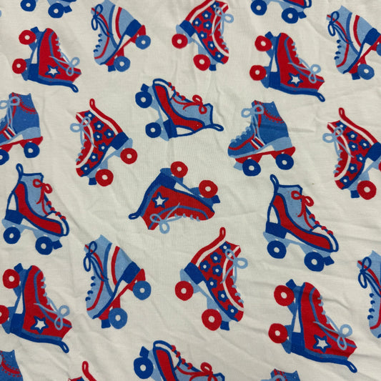 Red, White and Blue Roller Skates on Bamboo/Spandex Jersey Fabric - 200 GSM