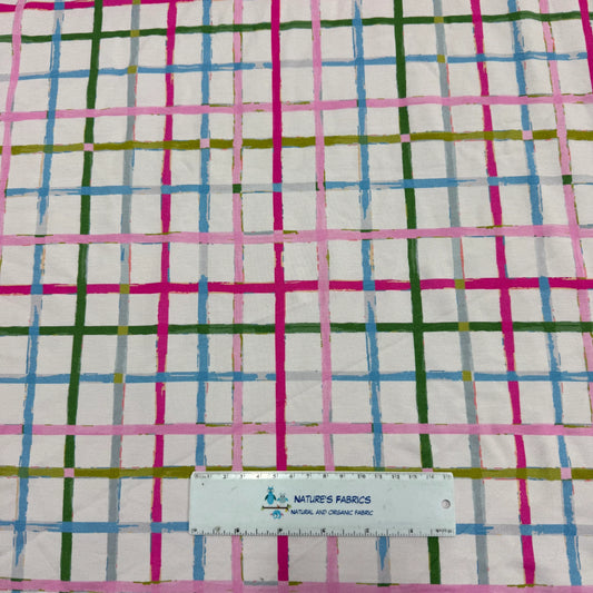Green and Pink Plaid on Bamboo/Spandex Jersey Fabric - 200 GSM