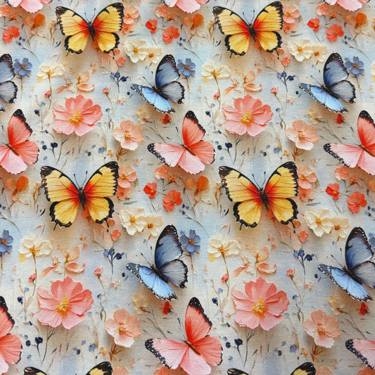 Butterflies and Flowers on Bamboo/Spandex Jersey Fabrics