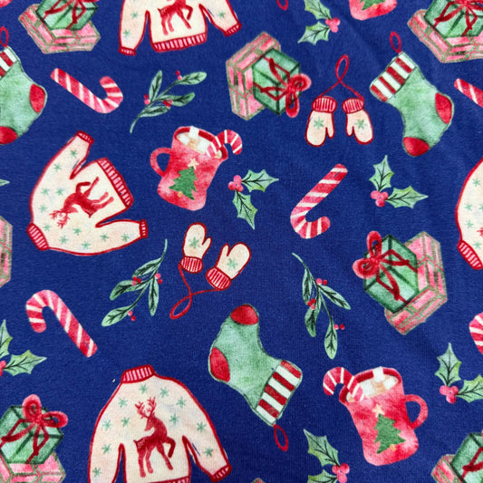 Holiday Toss on Blue Bamboo/Spandex Jersey Fabric - 200 GSM