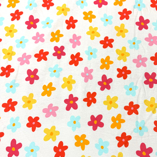 Rainbow Daisies on Peach Bamboo/Spandex Jersey Fabric - Printed in the USA