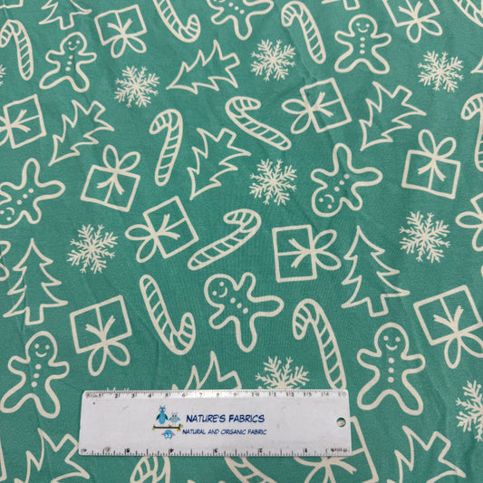 Holiday Shapes on Seafoam Bamboo/Spandex Jersey Fabric - 200 GSM