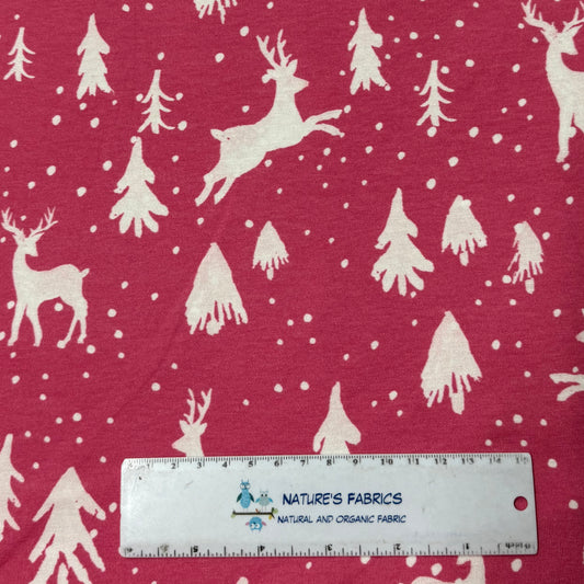 Off White Reindeer on Pink Bamboo/Spandex Jersey Fabric - Printed in the USA