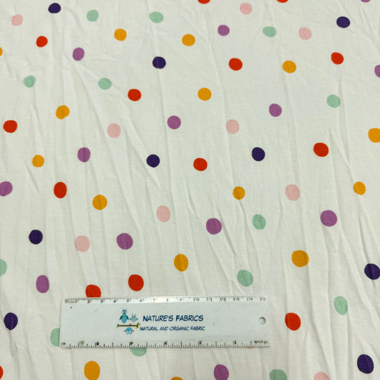 Bright 3/8" Dots on White Bamboo/Spandex Jersey Fabric - 200 GSM