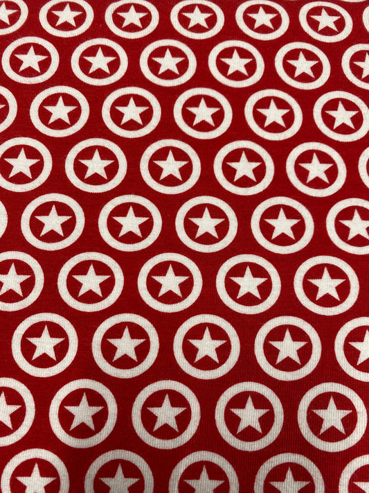 Star Circle on Cream Cotton/Spandex Jersey Fabric