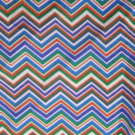 Blue, Green and Orange Chevron on Cotton/Poly Jersey Fabric