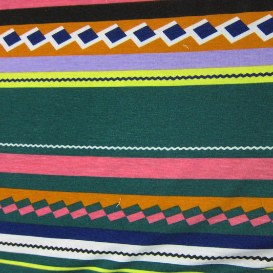 Green and Pink Aztec on Cotton/Spandex Jersey Fabric