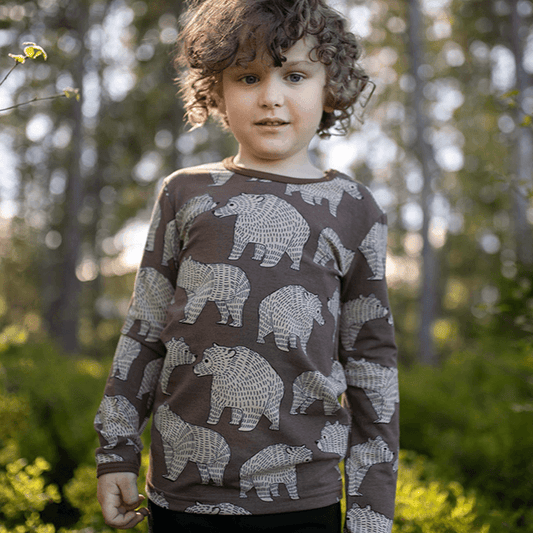 Latte Ursa on Chocolate Organic Cotton/Spandex Jersey Fabric
