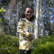 Happy Robots on Sun Organic Cotton/Spandex Jersey Fabric