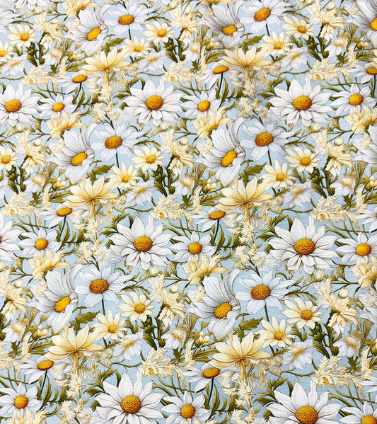 Daisies on Light Blue Bamboo Stretch French Terry Fabric