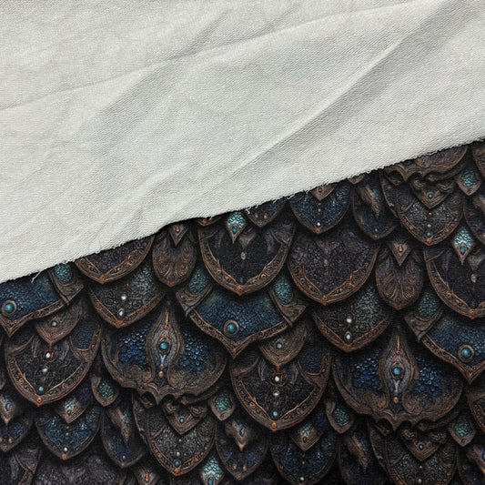 Teal Metal Scales on Bamboo Stretch French Terry Fabric