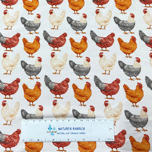 Chickens on Cream Bamboo Stretch French Terry Fabric