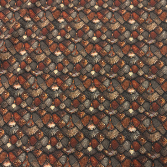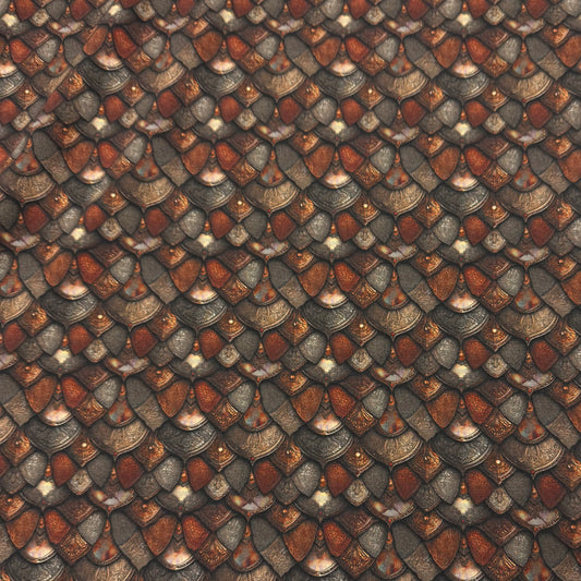 Gold and Brown Metal Scales on Bamboo Stretch French Terry Fabric