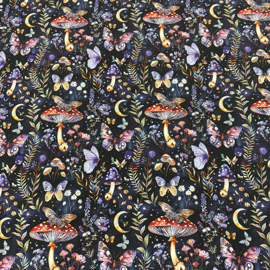 Magical Forest Night on Organic Cotton/Spandex Jersey Fabric