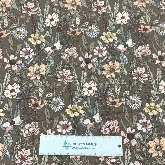 Wildflower Field on Dust Organic Cotton/Spandex Jersey Fabric