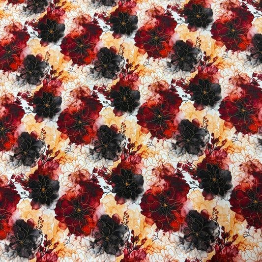 Autumn Watercolor Flowers on Bamboo Stretch French Terry Fabric