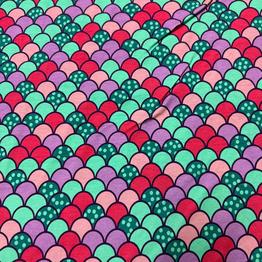 Pink and Purple Scales on Cotton/Spandex Jersey Fabric