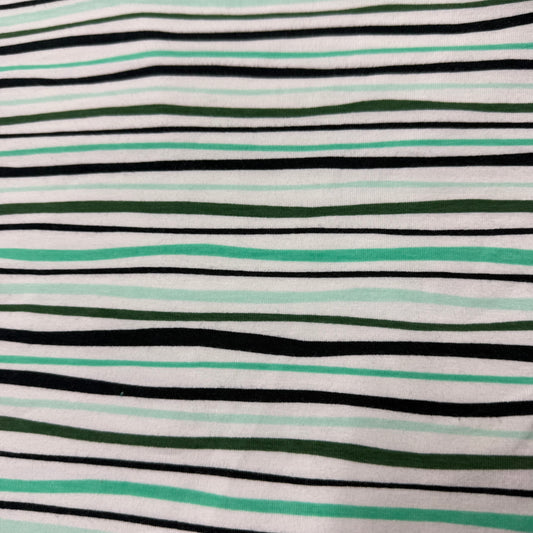 Green Shell Stripe on Cotton/Spandex Jersey Fabric
