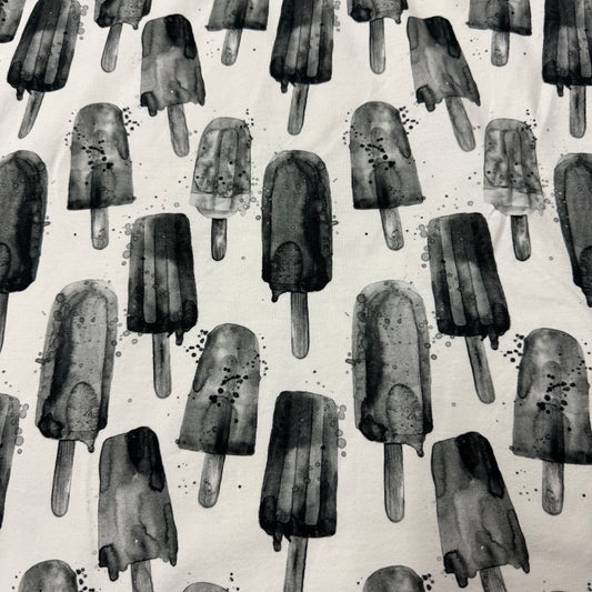 Black Watercolor Popsicles Organic Cotton/Spandex Jersey Fabric