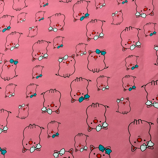 Pink Pigs on Pink Cotton/Spandex Jersey Fabric