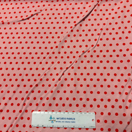 White Dots on Red Cotton/Spandex Jersey Fabric