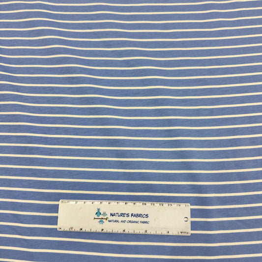 Blue and Off White Stripes on Supima Cotton/Spandex Jersey Fabric