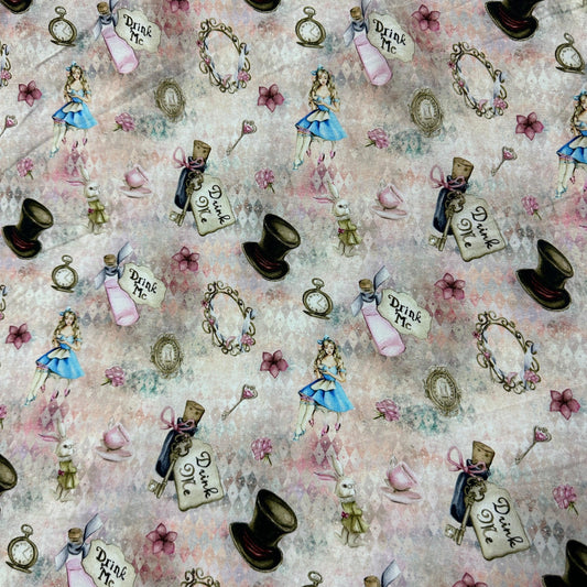 Alice and the White Rabbit on Watercolor Organic Cotton/Spandex Jersey Fabric